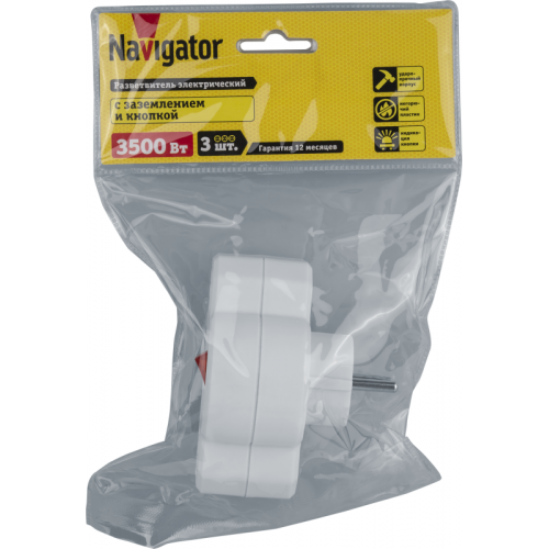 Разветвитель 3-м (1-м - с заземл. 2-м - без заземл.) 10А IP20 94 698 NAD-3-R2F-WH в ряд Navigator 94698