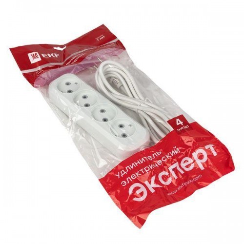 Удлинитель 4х2м без заземл. 10А IP20 Эксперт 2.2кВт ПВС 2х0.75 PROxima EKF UBA10-275-4-02