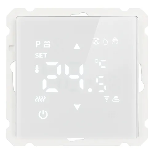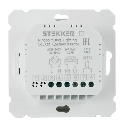 Терморегулятор сенсорный STEKKER GLS00-7119-01, серия Катрин, с подсветкой (белый), тип установки - скрытый, размер изделия 71*71*46мм., цвет белый, материал изделия ABS пластик, латунь. Номинальное напряжение 250 , номинальный ток 16А, IP20