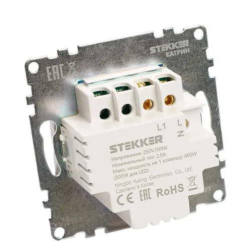 Выключатели сенсорный STEKKER GLS2-7203-01, серия Катрин тип установки - скрытый, размер изделия 71*71*36мм., цвет белый, материал изделия Закаленное стекло, поликарбонат, латунь. Номинальное напряжение 250В, номинальный ток 2,5А, 20