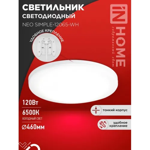 Светильник светодиодный NEO SIMPLE-12065-WH 120Вт 6500К 9600лм 230В 460х70мм бел. IN HOME 4690612061986