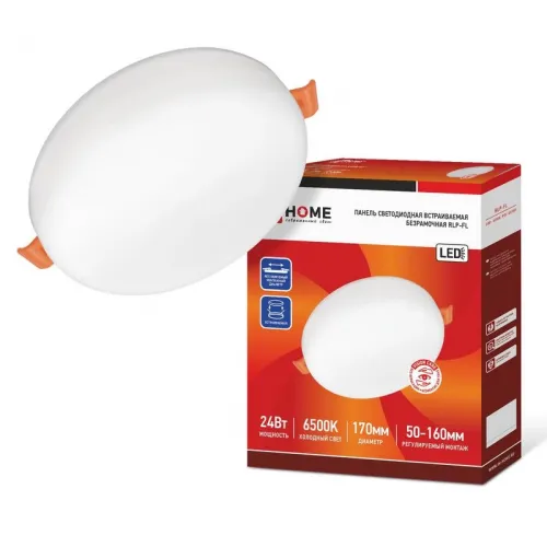 Светильник светодиодный RLP-FL 24Вт 6500К IP20 2160лм 230В 170мм с рег. монтаж. 45-140мм встраив. безрамочн. панель бел. IN HOME 4690612036748