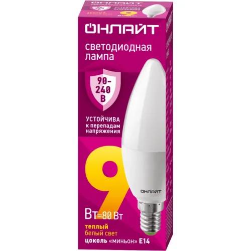 Лампа светодиодная 90 537 OLL-C37-9-230-2.7К-E14-FR PRO 90-240В ОНЛАЙТ 90537
