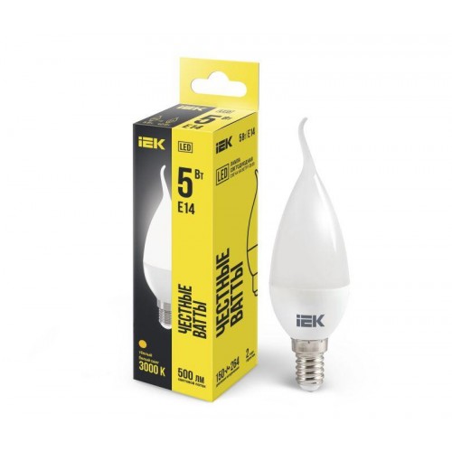 Лампа светодиодная CB35 5Вт свеча на ветру 3000К тепл. бел. E14 450лм 230-240В IEK LLE-CB35-5-230-30-E14