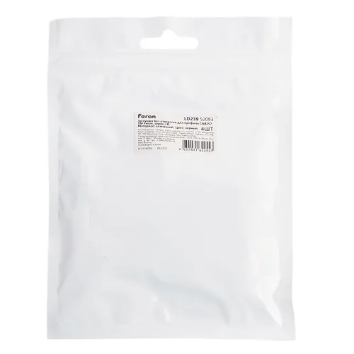 Заглушка для профиля FERON LD239 «без отверстия», цвет черный, в комплекте 4 шт, 50*2*34мм