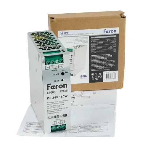 LB008 Трансформатор электронный на DIN-рейку 150W 24V 40*125.5*113мм IP20... Читать далее...