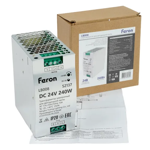 LB008 Трансформатор электронный на DIN-рейку 240W 24V 63*125.5*113мм IP20